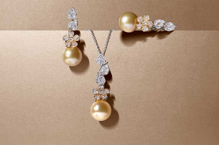 NewDuchess 18K Gold Pearl and Diamond Floral Motif Pendant