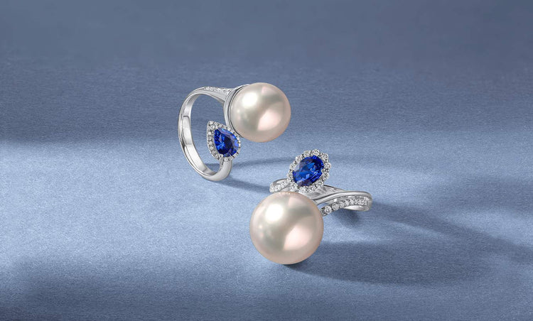 NewOphelia 18K Gold South Sea Pearl Round Cut Sapphire Diamond Ring